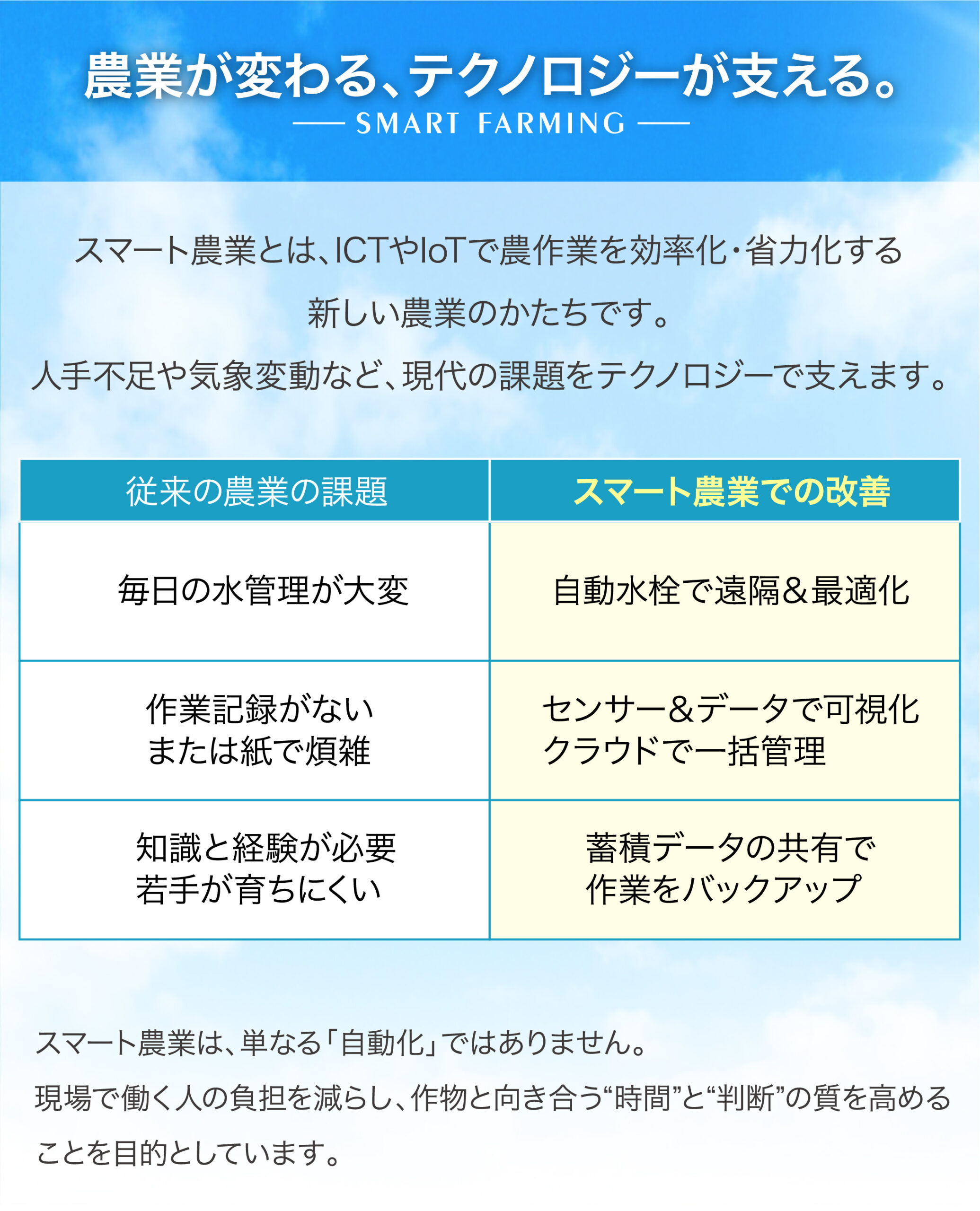 水やりの最適化で、水のムダと作物への負担を削減します。