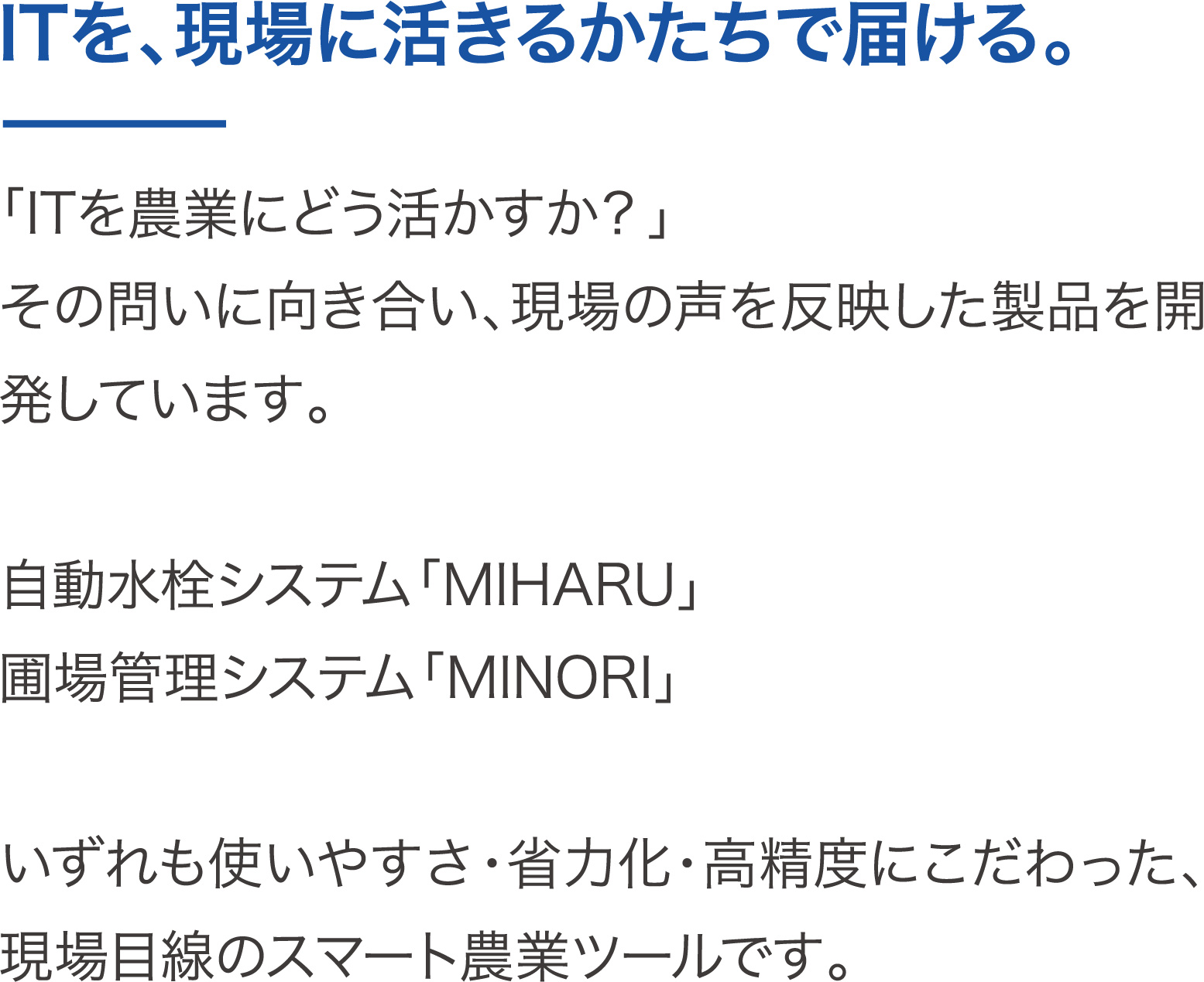 ご予算・圃場環境・作物に応じて、最適な導入プランをご提案いたします。